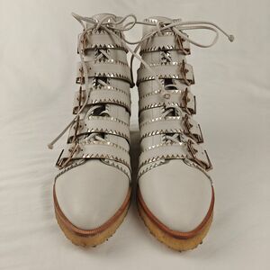 Femmes Sans Peur Buckles Lace Up Ankle Boots Ivory Gold Size 5.5/6 Y2K Western