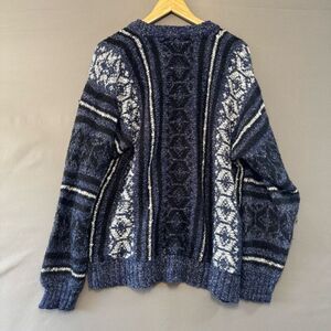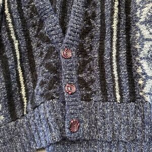 Femuche Men’s 100% Acrylic Cardigan Sweater Size Large Striped Graphic
