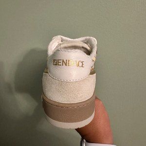 Fendace Fendi Versace Match Suede Sneakers Chunky Skate White Gold Size 37 Women