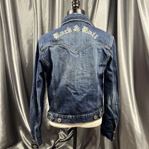 Fender Denim Women's Jacket Sz M Rock & Roll Embroidered Blue Jean Cropped RARE