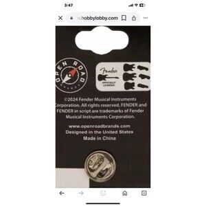 Fender Enamel Pin Brand New Fender Guitar Pick Shaped Pin Black & Silver