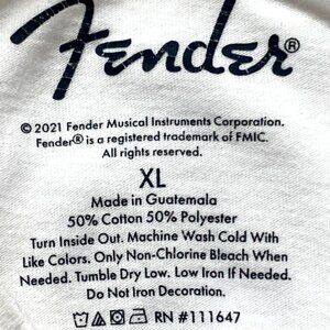 Show off your love for Fender Musical Instruments and guitars with this colorful graphic tee. This basic T-shirt features a crew neck with short sleeves and a pullover closure, making it perfect for casual occasions. The shirt is made of a cotton-polyester blend that is easy to care for, lightweight, stretchy, and breathable. This XL tee is perfect for women who want to add a hipster and indie vibe to their wardrobe. It is collarless, tagless, and suitable for wear in all seasons. The shirt is machine-washable and made in Guatemala. Get ready to rock in this Fender Graphic Tee without worrying about the condition of the shirt.
