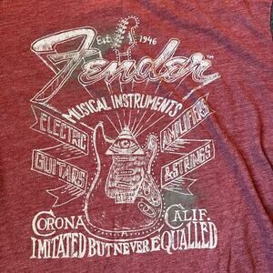 Fender Guitar men’s size medium baseball style electric guitars, amps, & strings imitated, but never equalled graphic t-shirt. In excellent condition from a smoke free home.