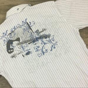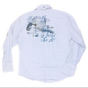 Fender Rock & Roll Lifestyle White Blue Striped Collared Button Shirt Men's XL