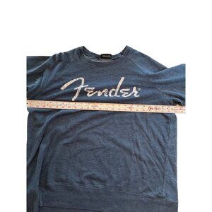 A classic, navy Fender sweatshirt in large (?) size with a distressed, off-white FENDER logo. Made from cozy, durable material, perfect for music lovers and casual wear.