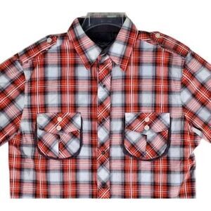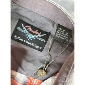 Fender Western Plaid Shirt Mens M Orange White Snap Button Rock Roll Religion LS