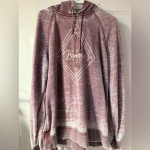 Fender sweatshirt with a striking guitar graphic. Soft mauve color.