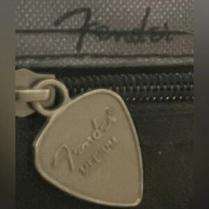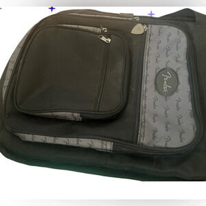 Fender guitar gig bag measuring 42” long. In excellent condition. This bag has several zipper pockets. There are straps allowing it to be worn as a backpack. This bag is in excellent condition with no holes or rips.
