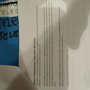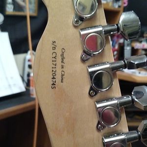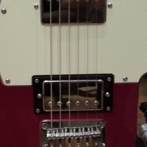 Bought in 2018, now not available anymore it's a Fender Squire Telecaster , Dark Metallic Red, has duo ceramic hummbuckers, c shaped neck, 12" fingerboard and jumbo frets.Sounds great. Have to sell due the left hand surgery.