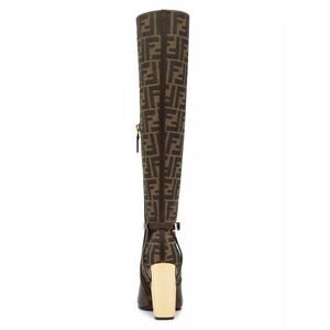Fendi 105mm Traced Brown Leather Monogram FF Logo Motif Knee High Heel Boot 37