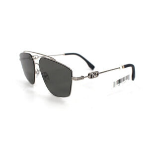 Fendi 58mm O'Lock Navigator Sunglasses NEW Silver Metal Frame Logo Gray Lens