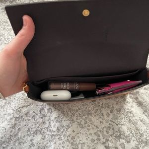 @nicolledunn I added a picture with items inside. As you can see there is still enough room for other items. My phone fits perfectly in the inside compartment also.