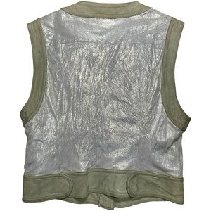 FENDI 2000s Karl Lagerfeld Sleeveless Low Cut Concealed Button Down Closure Tailored Metallic Vest Fully Lined Made In Italy