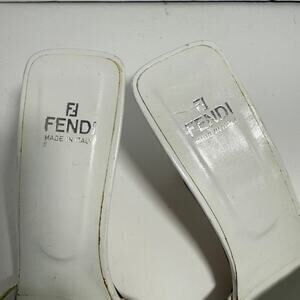 Fendi 9 Vtg Zucca FF Logo Canvas Slides Beaded Floral White Kitten Heel