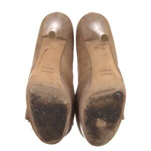 Fendi Authentic Solid Tan Genuine Suede Peep Toe Bow Heels Pumps 9