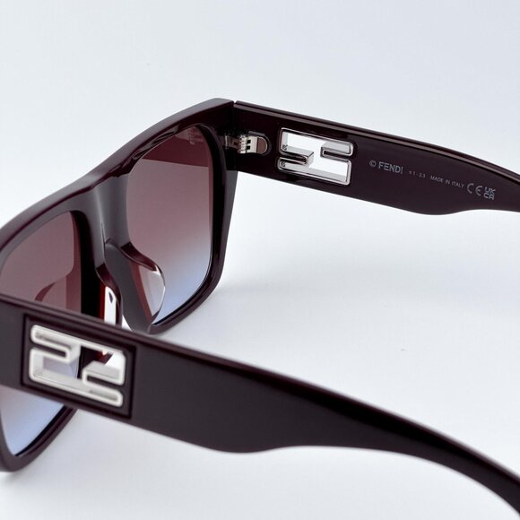 Fendi BAGUETTE FE40124F 81T Women BRAND NEW Sunglasses Square Matte Brown Gradient Bordeaux