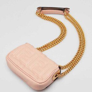 Fendi Baby Pink Embossed Leather Nano Baguette Chain Crossbody Bag 7AS143