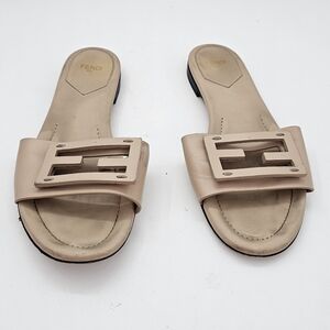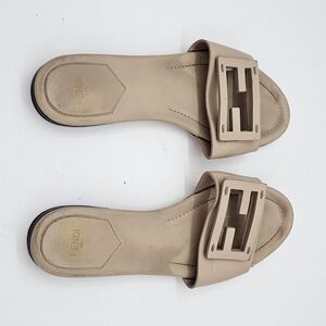 Fendi Baguette FF Leather Sandals Tan Size 39 (US 8.5)