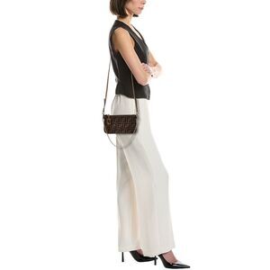About the brand: Innovative and elegant Italian luxury. Made in Italy Baguette FF Jacquard Pouch in brown FF jacquard canvas with gold-tone hardware and logo accent Interior design details: canvas interior, leather card slots Measures 7.75in wide x 5in high x 1in deep Top handle drops 8in Removable shoulder strap drops 21in Zipper closure Please note: All measurements were taken by hand and are approximate; slight variations may occur. Our products are 100% genuine. In some cases we purchase merchandise from trusted independent suppliers and not directly from the brand owner. In all cases we stand by the authenticity of every product sold on our site.