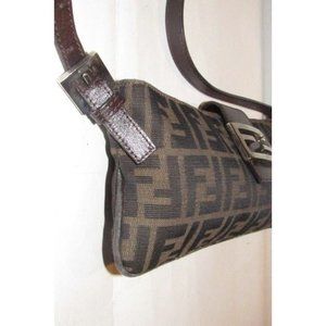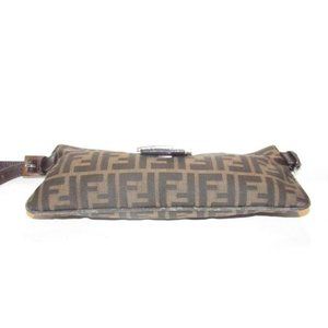 Fendi Baguette Style Shoulder Cross Body Zucco Print In Browns Canvas