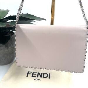 Fendi Beige Blue Orange Owl WOC Crossbody Bag SHW Scalloped Edges