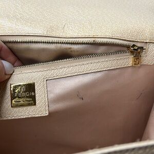 Fendi Beige Cream Leather Logo Marble Clasp Bag