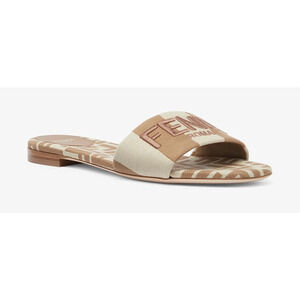 Fendi Beige Sand Striped FF Monogram Logo Mule Slide Flat Flip Flop Sandal 38