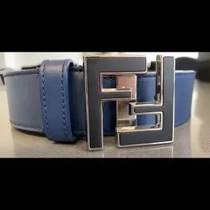 Blue fendi leather belt. I think it can be worn for men or women in my opinion.Still sold on website. No box or dustbag. A additional hole was made to fit. See pic .