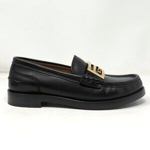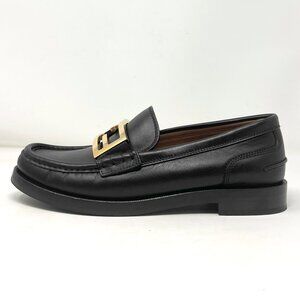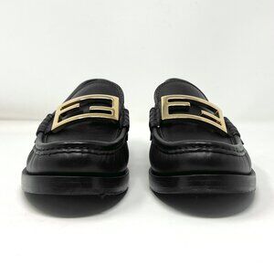 Fendi Black Leather FF Loafers Gold Logo EU 39 Slip-On Flats