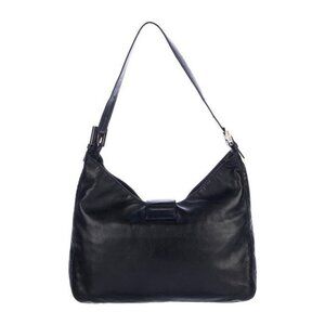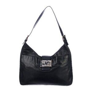 Fendi Black Leather Shoulder Bag Hobo w V Shaped Style enamel FF Clasp Satchel