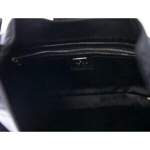 This bag is made supple black lambskin leather with a black enamel FF logo clasp. It is a hobo style shoulder bag with a deep 'V' at the center where the leather strap with the enamel and chrome FF logo snaps close to secure it. There is an exterior pocket at the front. It has an adjustable leather strap, engraved chrome hardware, and is in mint condition- don't miss out!