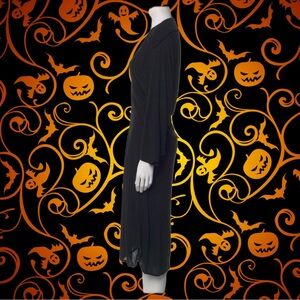 Elegant black midi dress by FENDI with billowy sleeves and sexy deep V neckline. No material tag and brand tag is loose, otherwise no flaws. Perfect dress for so many fall events!