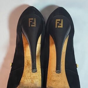 Fendi Black Suede Leather Ankle Platform Pumps Size 36