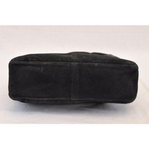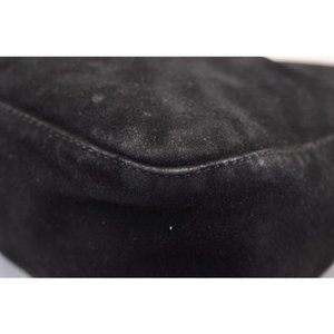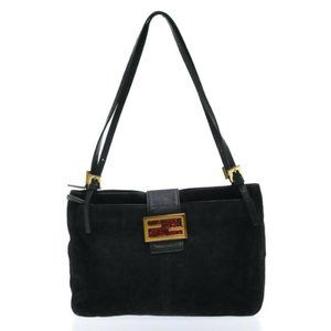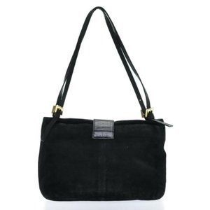Fendi Black Suede Leather V Shaped Enamel Clasp HOBO Style Satchel Shoulder Bag