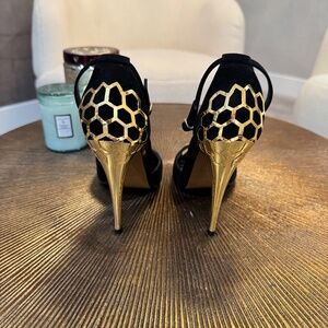 Fun statement heels! These are in used very good condition. Worn only 3 times. Full set with box and dust bag.
