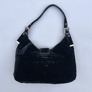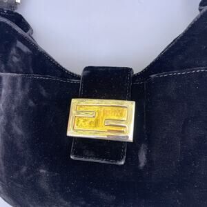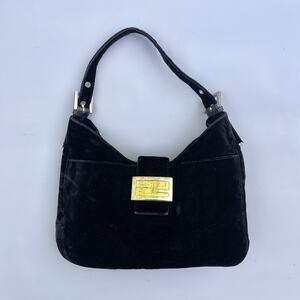 Fendi Black Velvet Baguette Shoulder Bag Two Tone Hardware