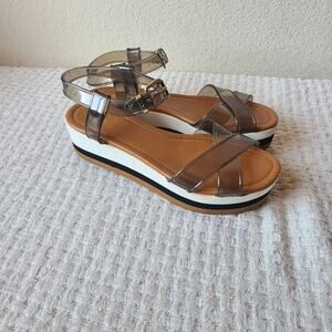 Fendi Black White Tan PVC Jelly Flat Platform Sandals Women's EU 40 US Size 9