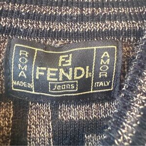 Luxurious Fendi turtleneck with iconic Zucca pattern. Stylish black and brown design. Perfect for a sophisticated look.