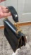Chic black leather clutch with gold trim. Features Fendi logo and geometric clasp.it’s missing the shoulder strap but it’s in great condition