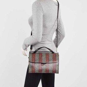 Fendi Black/Red/White Striped Saffiano Leather Demi Jour Shoulder Bag