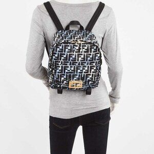 Fendi Blue/Black FF Nylon Small Joshua Backpack Bag - 8BZ048