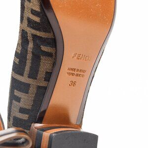 These Fendi pumps combine fashion and comfort with their Zucca canvas and leather construction. Featuring a bow, a patent leather toe cap, and a small stacked heel, they will elevate any outfit while keeping you comfortable. Perfect for any fashion lover.