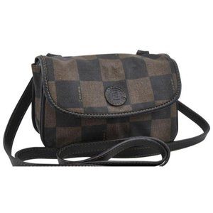 Fendi Brown Checkerboard Print Coated Canvas And Leather Belt Or Shoulder Purse