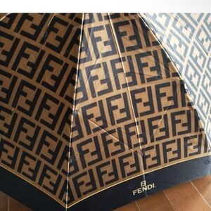 Authentic Fendi Folding Umbrella Zucca Unisex Brown Gold Black