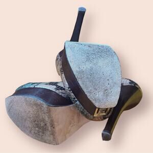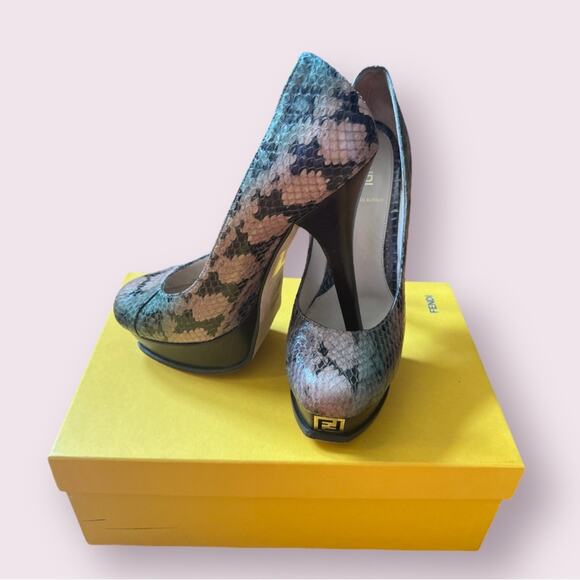These pumps are in excellent condition, with minor, barely visible scratches, as shown in the photos. They come with their box, adding to the luxury experience. Crafted in Italy and boasting gold-tone hardware, these pumps are a testament to Fendi's dedication to excellence.
