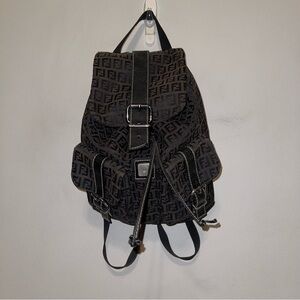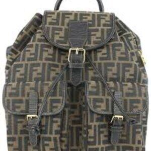 Fendi Brown Zucca Monogram Canvas & Textured Calfskin Leather Vintage Ba…