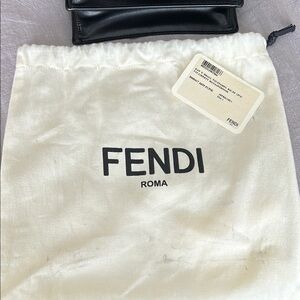 This Fendi crossbody bag showcases the iconic FF monogram in a sophisticated brown and black color palette. Its structured design is complemented by a luxurious gold-tone chain strap and a prominent clasp, making it a timeless accessory for any occasion. In great condition and comes with dust bag and id card for the bag.