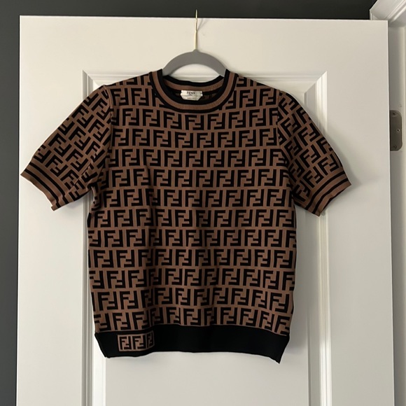 Elevate your style with this Fendi women's sweater, featuring a striking brown and black pattern. Perfect for any occasion, this sweater combines luxury and comfort.