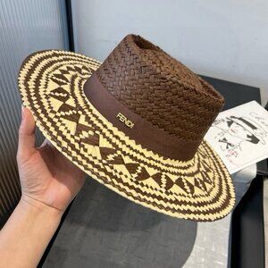 Elevate your style with this Fendi straw hat. Featuring a sophisticated brown and cream design, it's perfect for any occasion.
