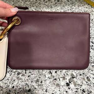 This elegant Fendi set features a sophisticated brown and cream color palette, showcasing the iconic FF monogram pattern. The clutch and wristlet are crafted with luxurious materials, making them perfect for adding a touch of luxury to any ensemble. Ideal for both casual outings and formal events, these pieces embody timeless style and versatility.